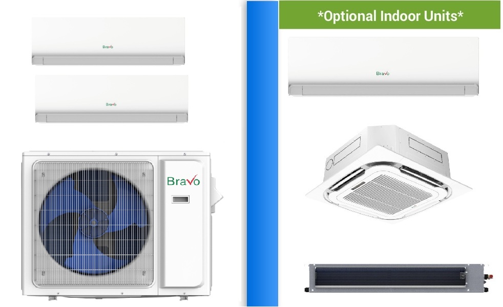 Bravo 2-Room Mini Split Heat Pump (-13°F) WIFI, E-Star: 22 SEER2/12.3 EER/10 HSPF (R32)