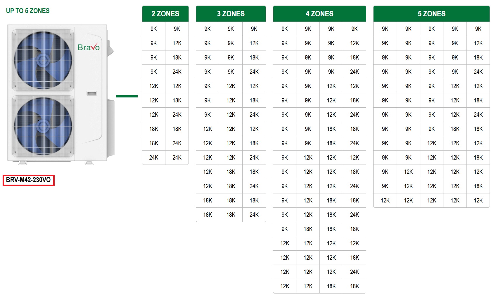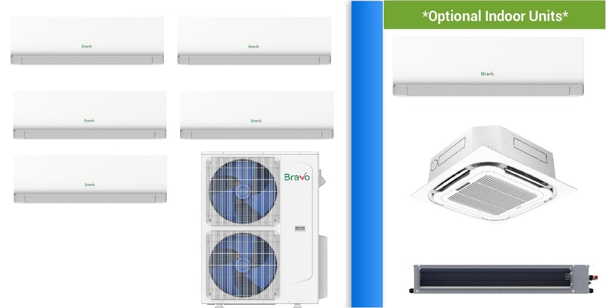 Bravo 5-Zone 24 SEER2 Mini Split Heat Pump (-13°F) WIFI, 12.5 EER/10.5 HSPF (R32)