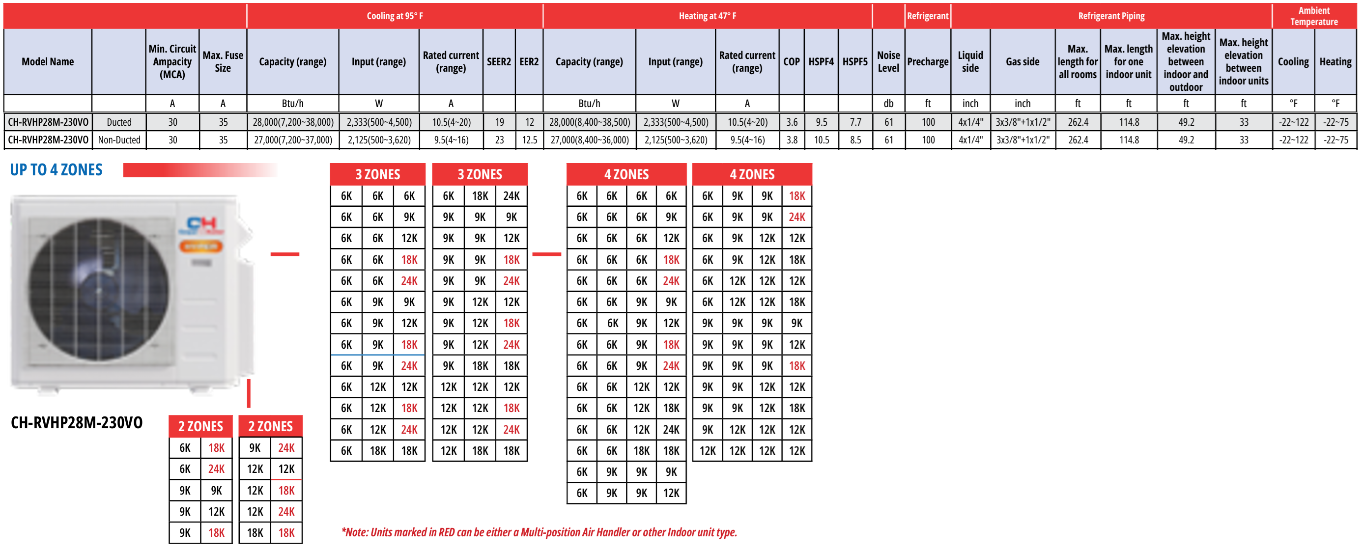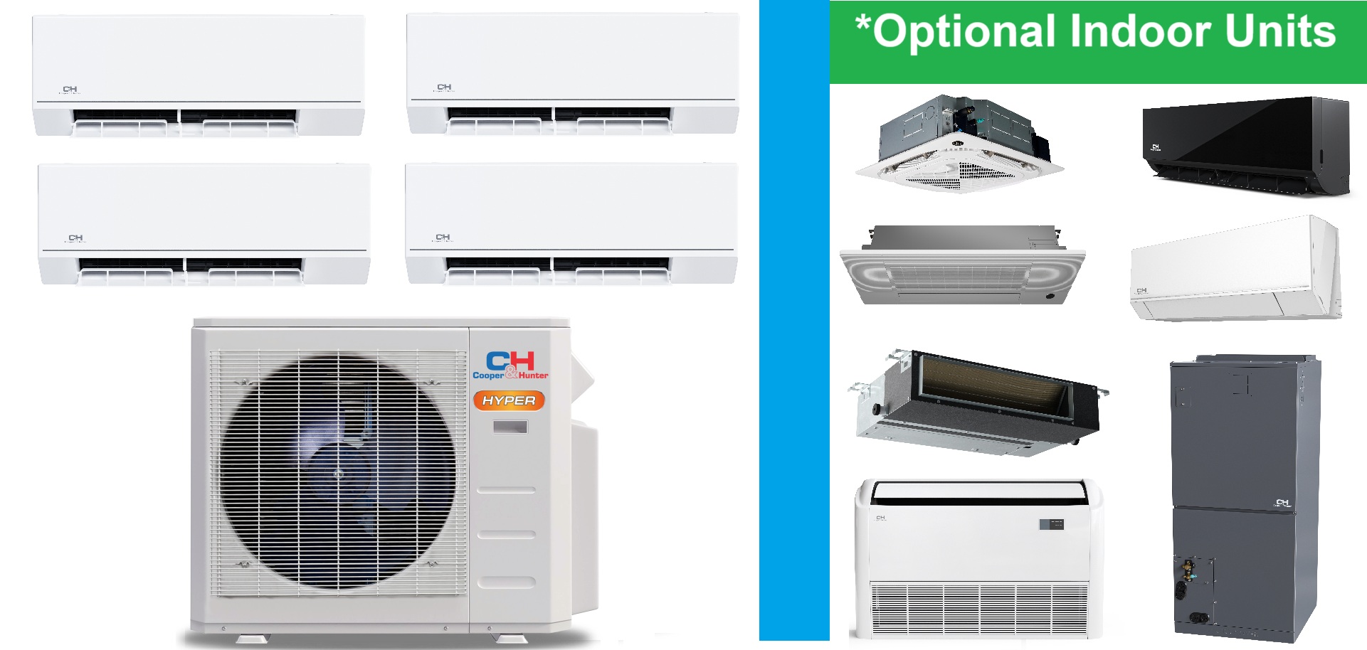 *This Customizable C&H Quad Zone Package Includes: *Four (4) Ductless Wall Mount *Indoor Units (w/ Remotes & WIFI) *Outdoor and indoors can be upgraded via the dropdown boxes above.