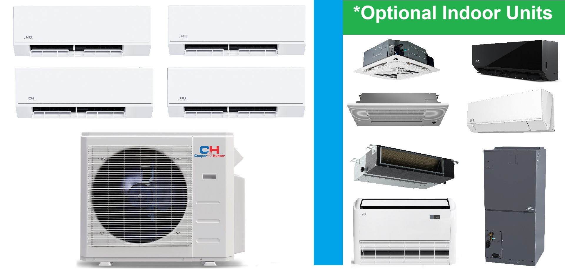 C&H 4-Zone 25 SEER2 Mini Split Heat Pump AC (-13°F) E-Star: 13 EER/9.5 HSPF (R454B)