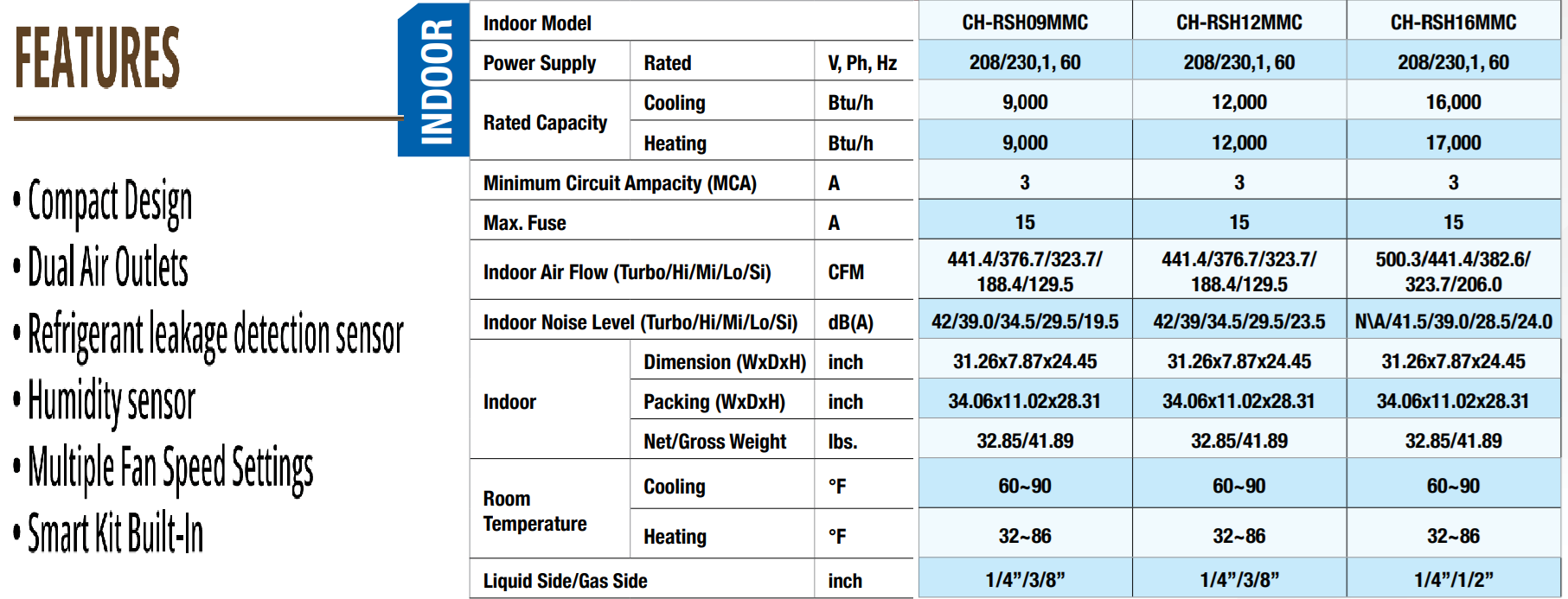 CH-RH24MCT *RS = Refrigerant Sensor