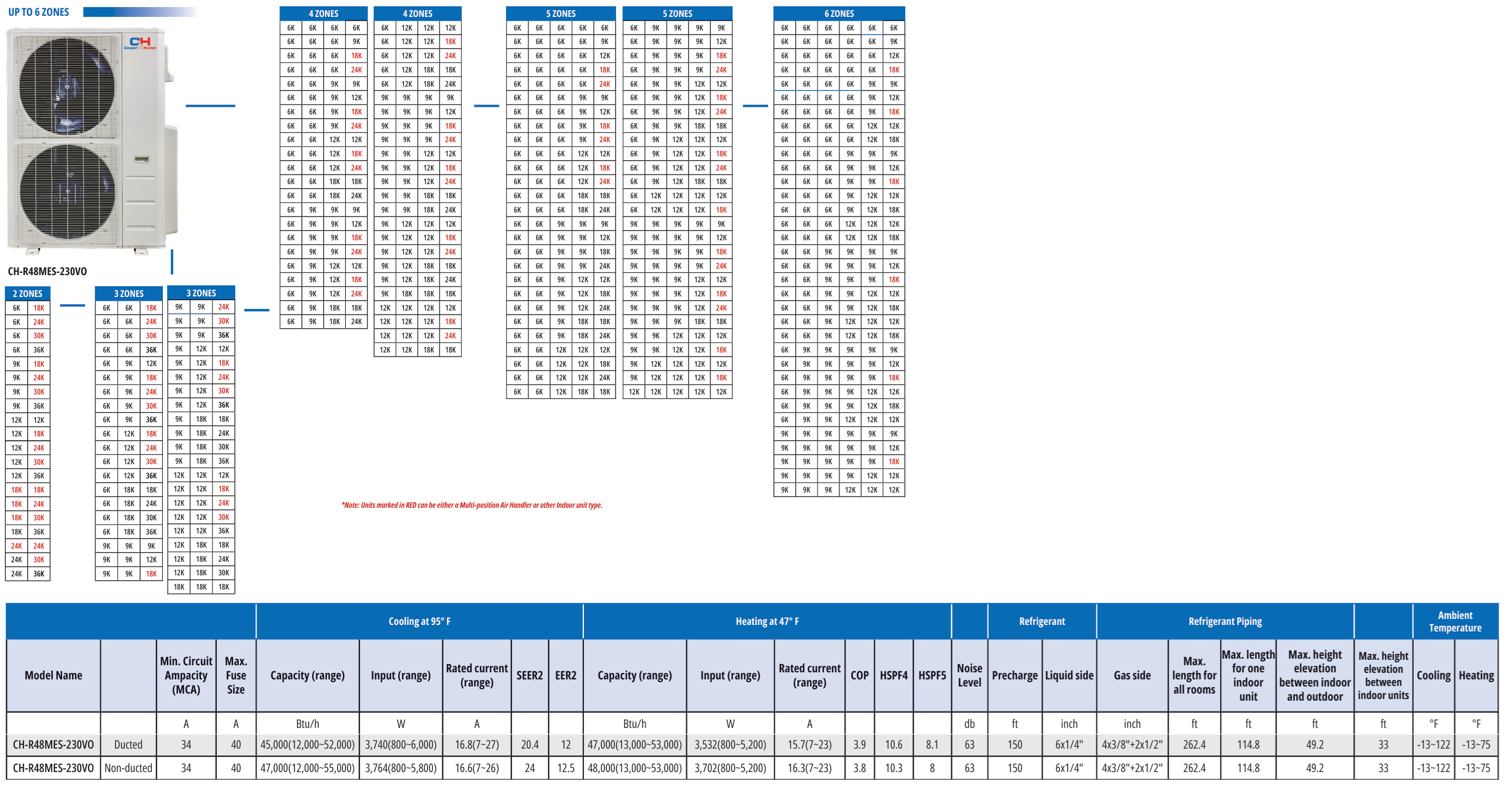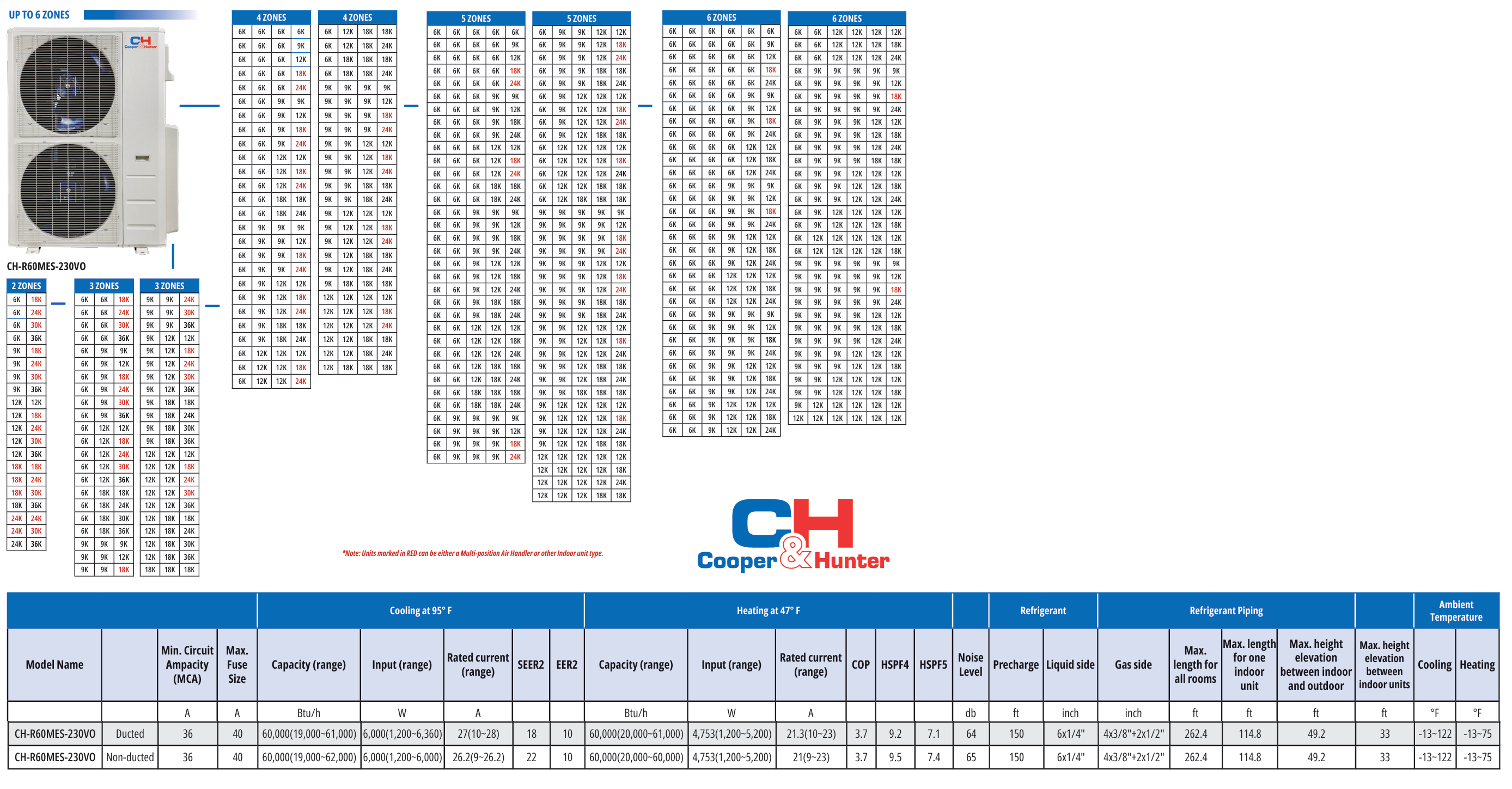 C&H (2-6) Multi-Split Air Conditioner Heat Pump (-13°F) E-Star: 25.1 SEER2/14 EER/9.8 HSPF (R454B)