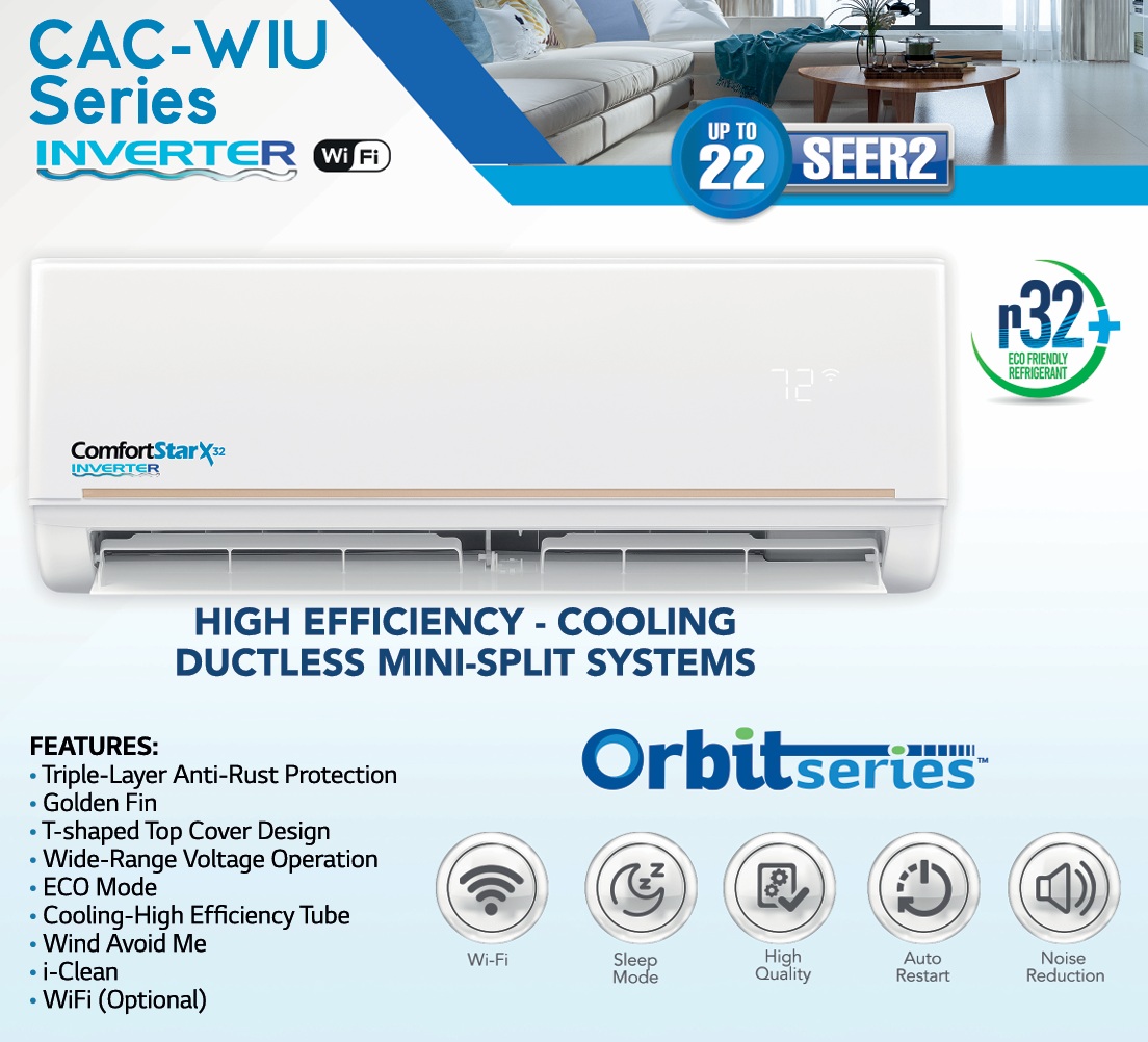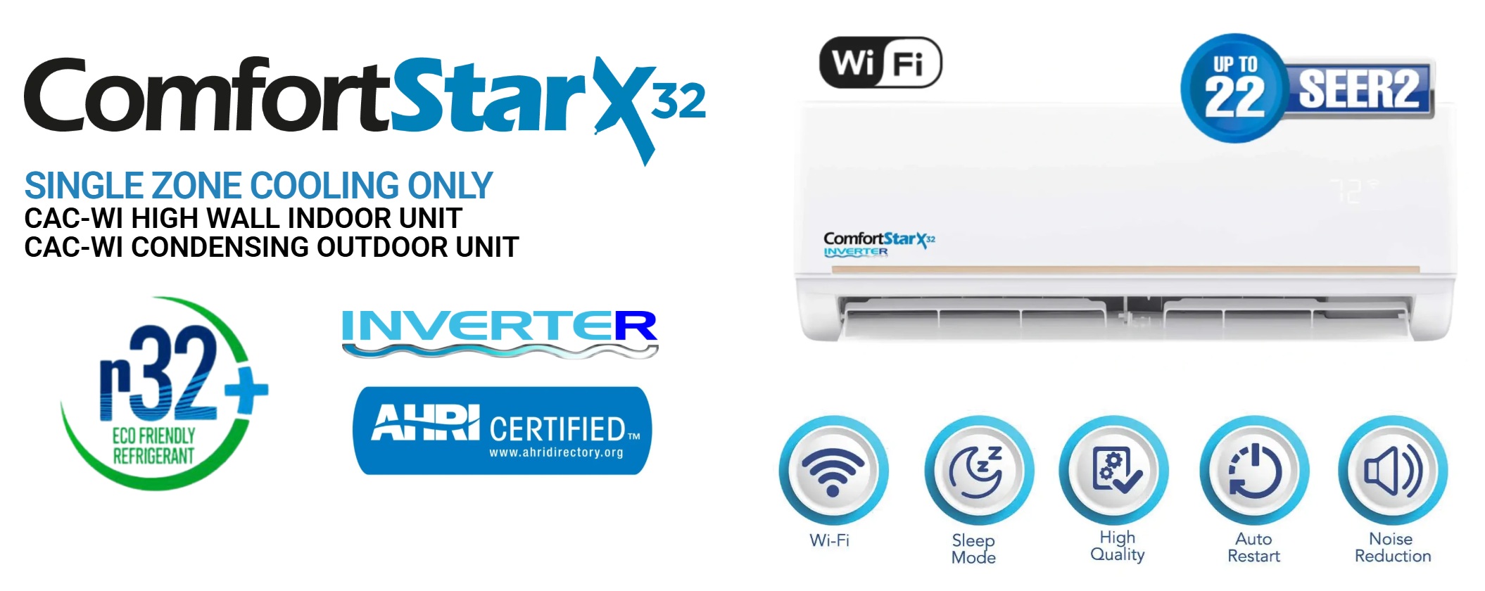 The ALL NEW R32 CAC-WIU Series by ComfortStar. Comfortstar has been in the industry for over 50 Years producing some of the most reliable Ductless Mini-Split Systems on the market. This Cooling ONLY HI SEER Series is one of the most efficient models Comfortstar has produced to date, and now they offer lower ambient operation.