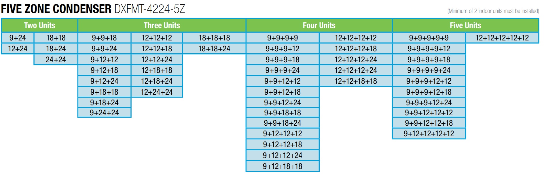ADD the following indoor units via the dropdown boxes above. Important: DO NOT EXCEED OUTDOOR BTU MAX CAPACITY See Allowed Indoor Combinations: CLICK HERE