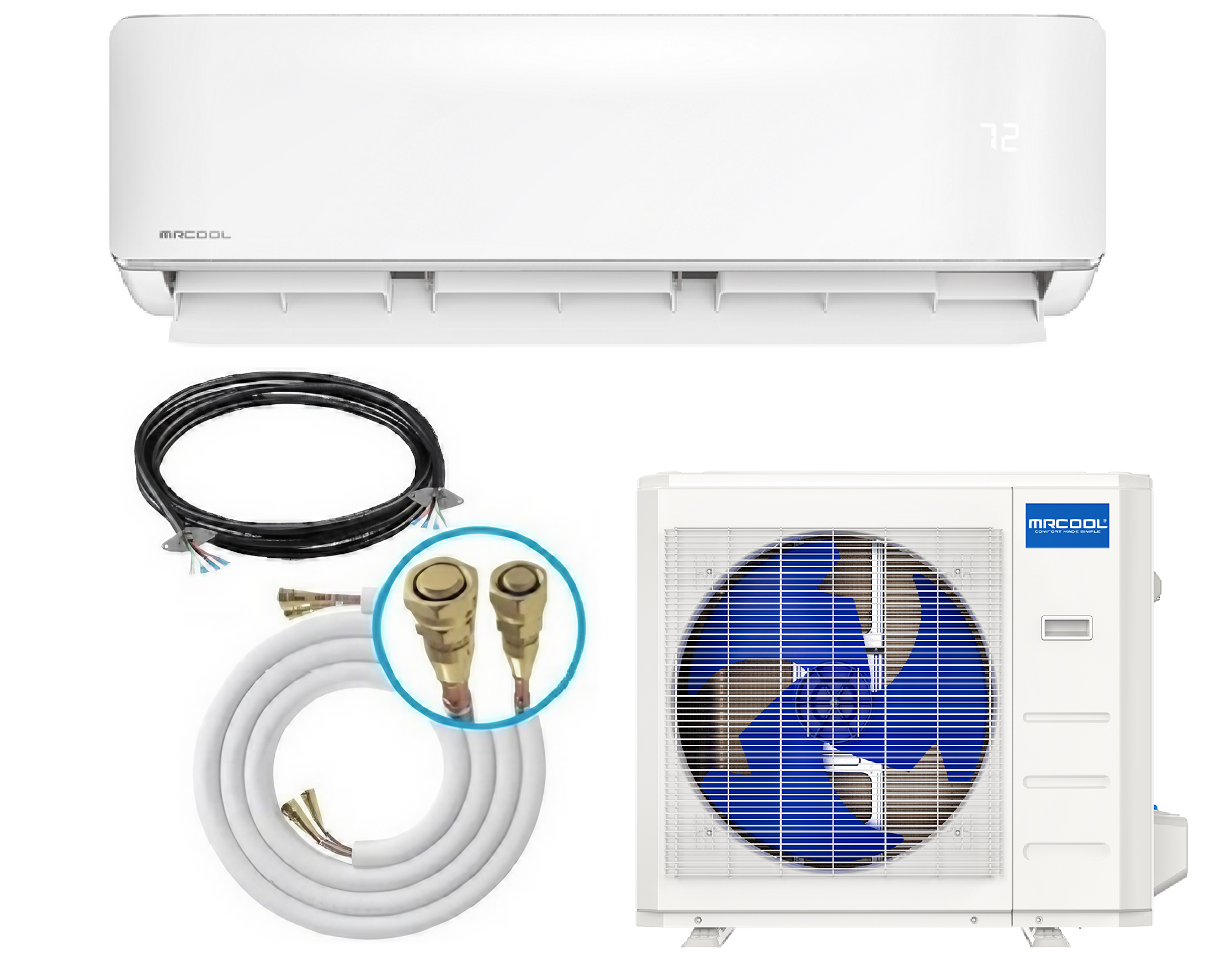 Take full control of your home comfort with the 5th Generation MrCool DIY Hyper Mini Split System. Homeowners can easily install this outdoor heat pump condenser and indoor air handler since installation requires no special tools, equipment, or training. This full heating and cooling system can be installed in just a few hours.