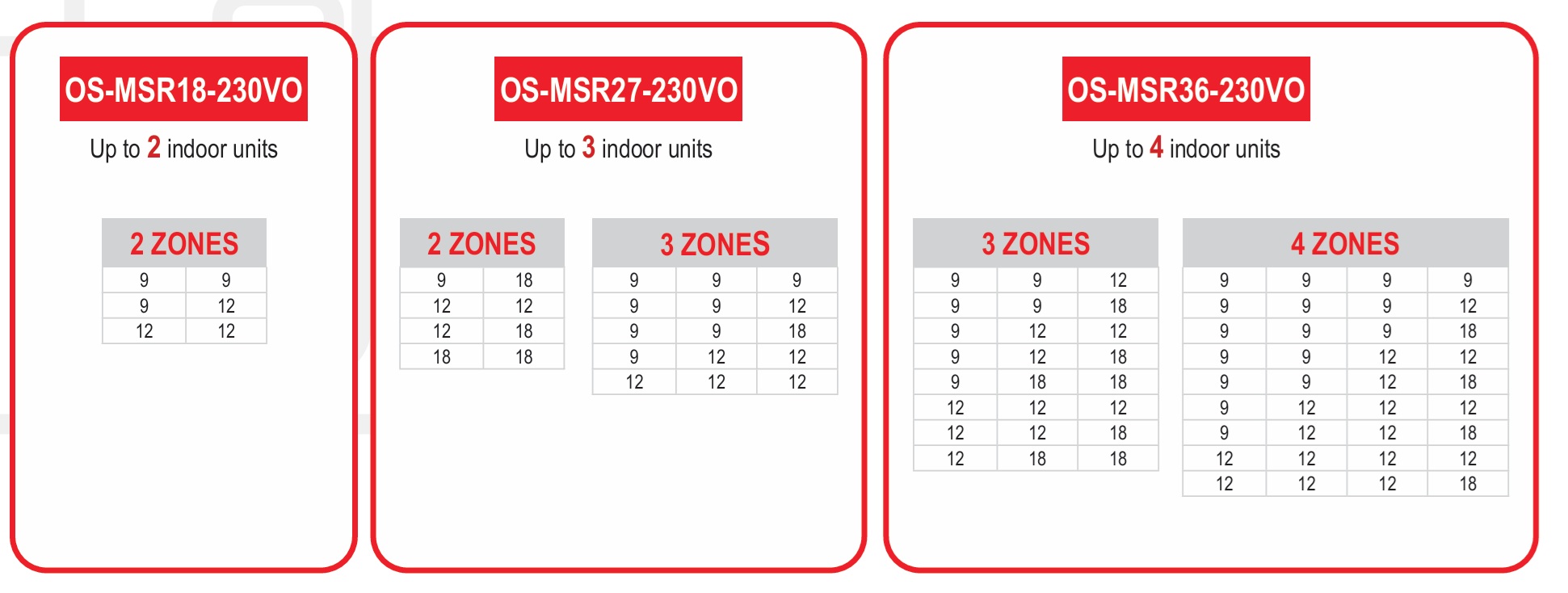 (Outdoor unit must be capable of running your indoor selections- see the allowed combinations) |