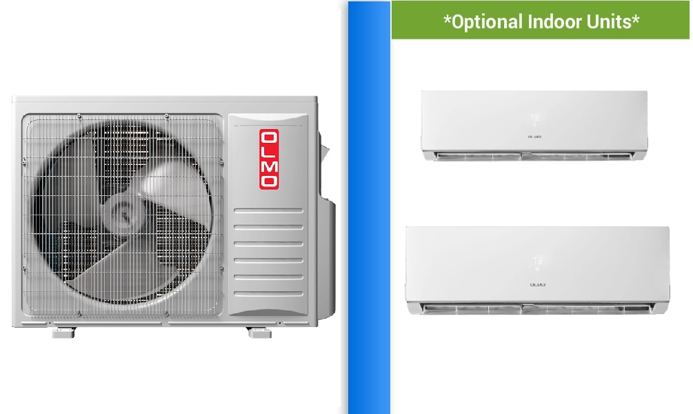 This ENERGY STAR 2 Zone OLMO Mini Split Package Includes: *UPGRADE the outdoor unit and ADD (2) indoor units