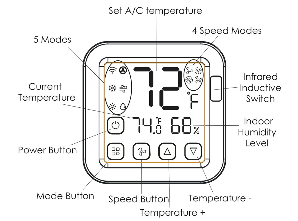 - Change between 5 Modes and 4 Fan Speeds