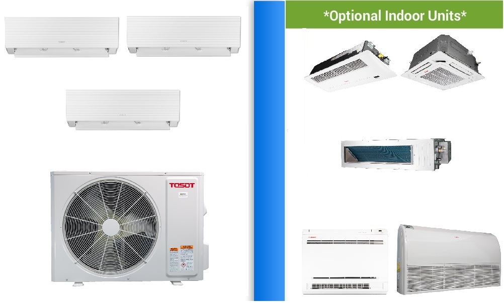 TOSOT 3-Zone 21 SEER2 Mini Split H-Heat Pump (-22°F) WIFI, E-Star: 12 EER/10 HSPF (R32)